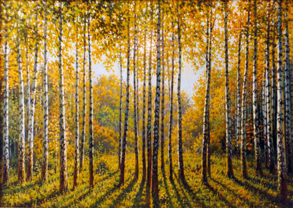 Осень. Утро в берёзовой роще.