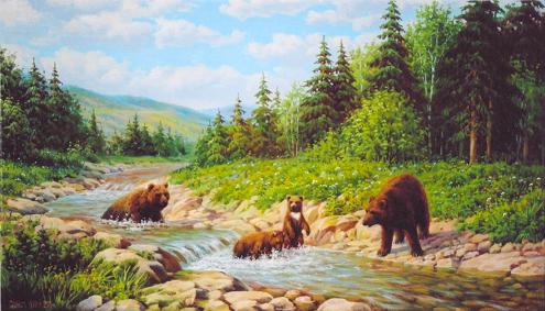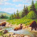 Медведи, купающиеся в речке