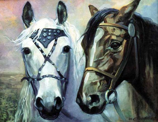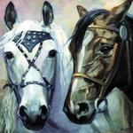 Головы двух лошадей.